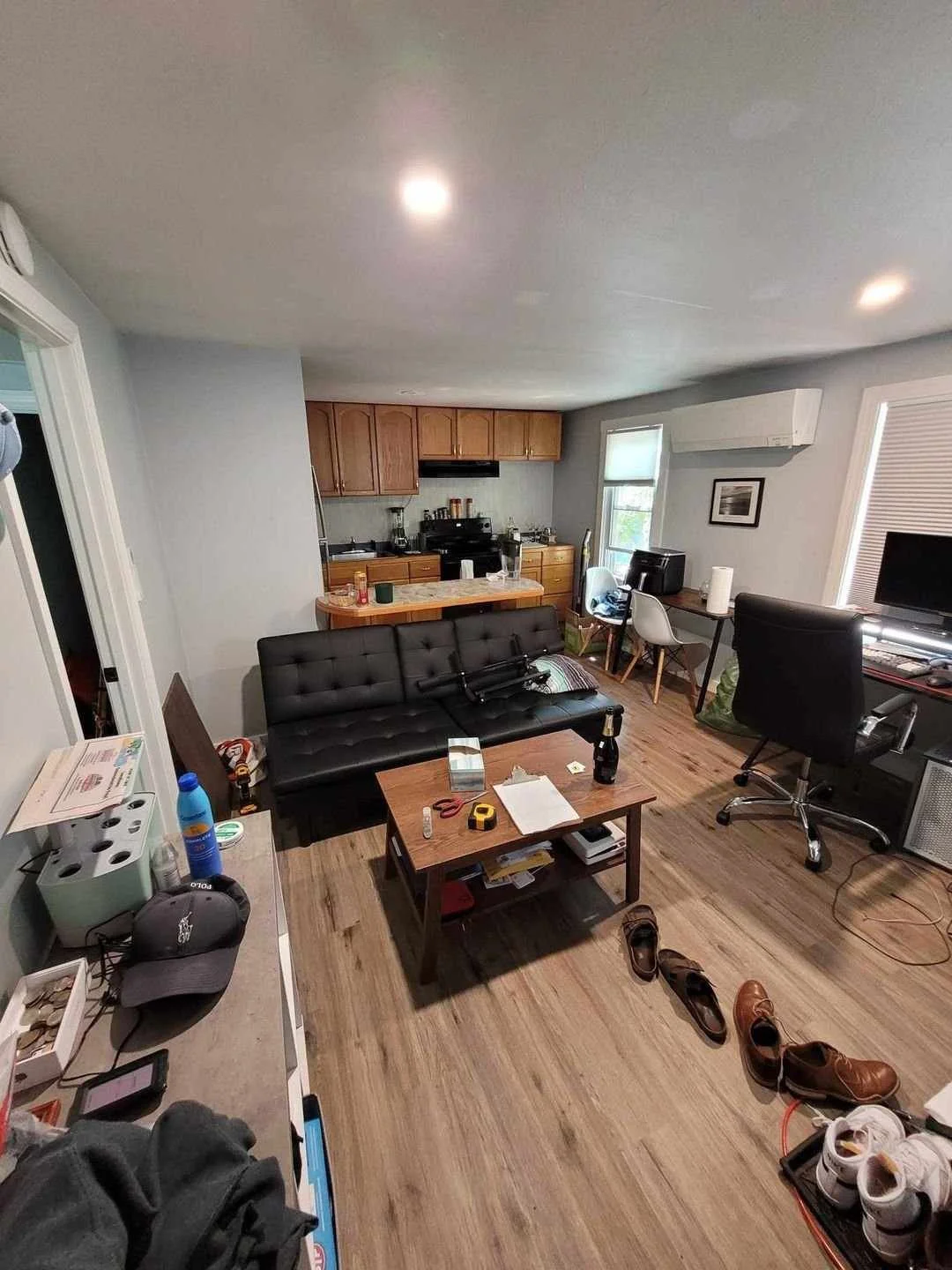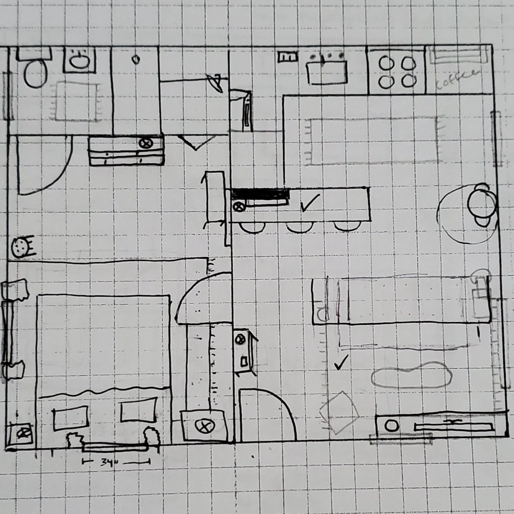 The small, weird-shaped island here doesn’t make sense (see it behind the futon).